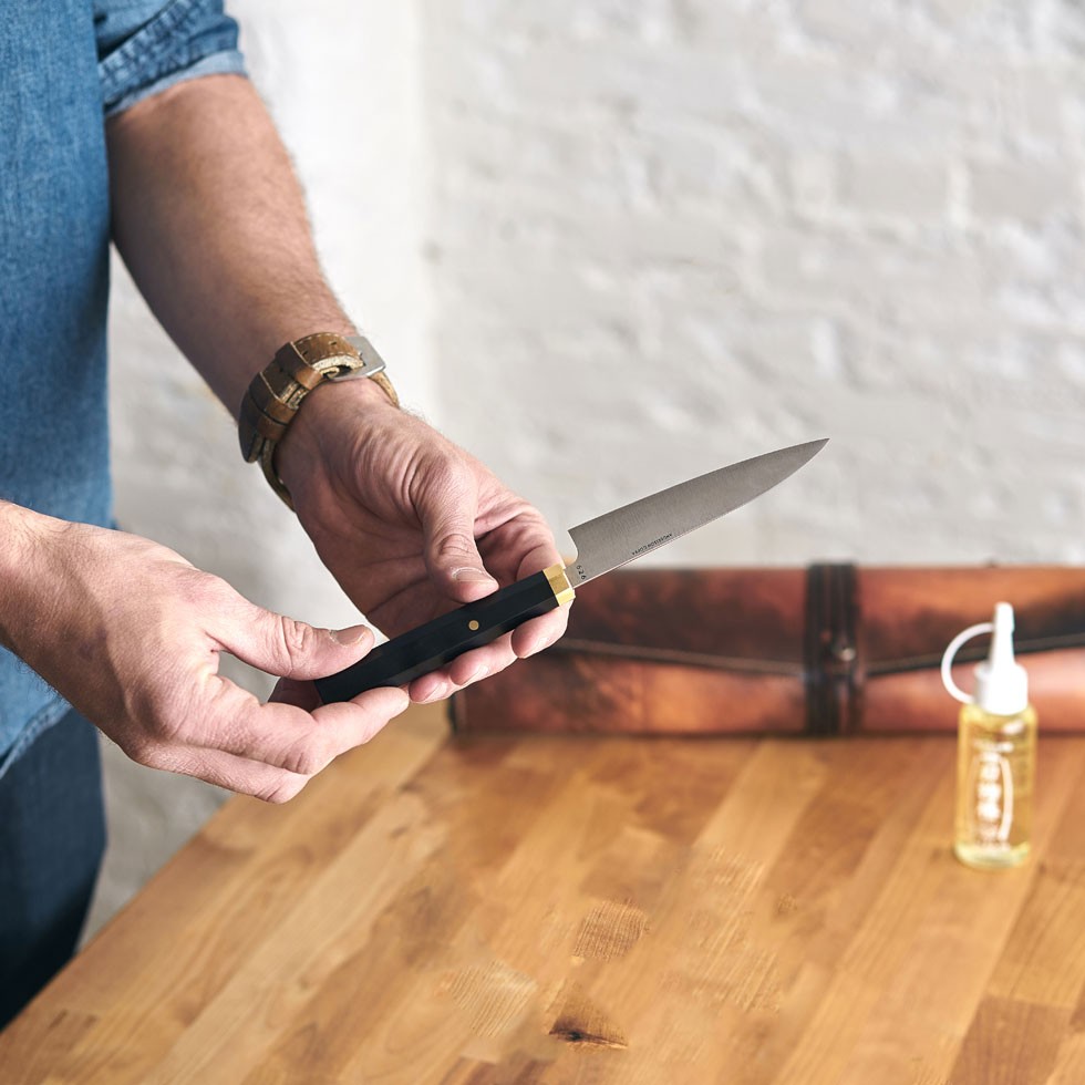 Designed in collaboration with Sweden’s Andersson Copra, this slim paring knife is perfect for a wide range of small, detail-oriented cuts — especially those requiring a touch of added blade strength.